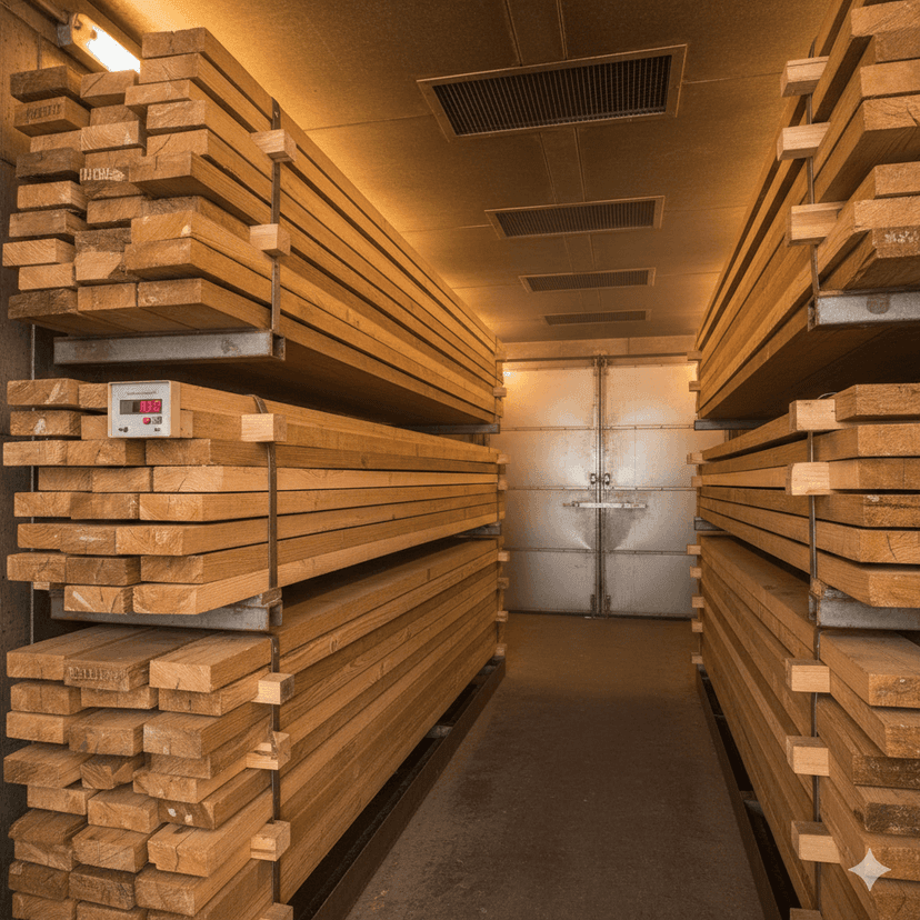 "In this stage, we use specialized, precisely calibrated kilns to gradually dry the wood, reducing moisture and preventing future shrinkage or cracks. We pay close attention to this step as it directly affects the quality of the final product and its stability in the usage environment."